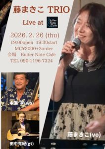 2026.02.26(1件のイベント) 藤まきこ(vo) 中瀬 享(wb) 田中克紀(gt) – 2026年2月26日 木曜日